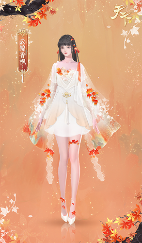 岁暮天寒,秋日不再,可秋季独有的漫山红枫却让人印象深刻为了将美好秋色留住,今日为少侠们带来全新时装云锦香枫,以红枫作新衣,把秋天穿在身上此外,还有全新萌猫坐骑狸小花登场,接下来小编为各位玩家带来的是天下手游新时装详解,一起来看看吧。,